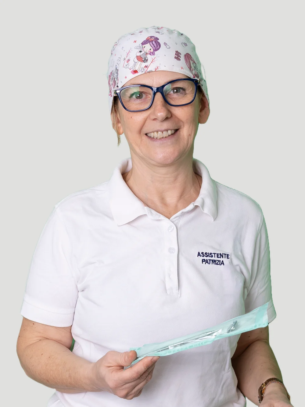 Patrizia è la colonna portante dello studio da 25 anni. Oltre a gestire l’amministrazione e il coordinamento degli appuntamenti, è la persona che sa metterti a tuo agio nei momenti di tensione. Con la sua esperienza e il suo buon umore, trasforma l’accoglienza in un momento familiare, assicurandosi che ogni tua necessità, organizzativa o clinica, riceva la massima attenzione.